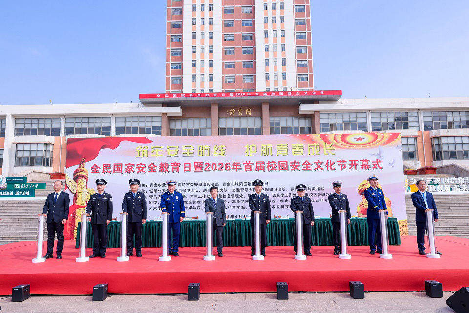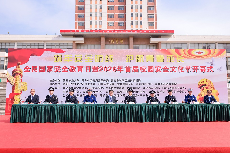 4月15日,全民国家安全教育日暨2026年首届校园安全文化节开幕式在青岛农业大学虹子广场举行。校党委副书记田义轲出席活动并讲话。青岛市公安局城阳分局副局长于海、政治保卫大队副大队长项俊龙、陈继伟,刑事侦查大队副大队长于新磊、交通警察大队副大队长李树磊、正阳路派出所指导员蔡斯民,城阳区消防救援局局长王超、副大队长徐津,驻校警务室高级警长王宏善受邀参加活动。启动仪式由副校长孟晓军主持。
