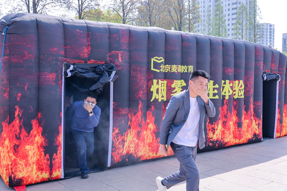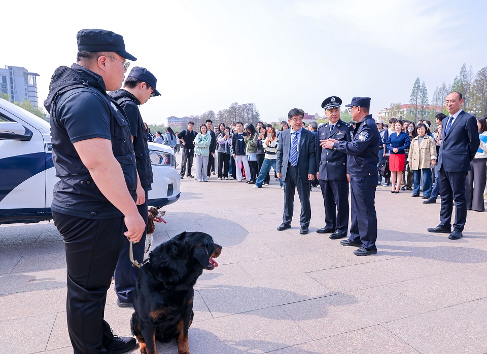 演练结束后,一系列沉浸式、体验式安全宣传活动有序开展。消防救援及防爆器械展区内,消防人员详细展示消防水带、破拆工具、自救呼吸器等专业装备,并现场演示操作方法,使师生直观掌握消防器材的用途与使用技巧。师生们进入安全逃生屋,沉浸式体验模拟火场逃生,感受真实的避险场景;警犬互动展示环节,训导员指挥警犬完成服从、追踪、扑咬等科目,其矫健身姿与精准执行赢得阵阵喝彩。此外,师生还前往图书综合楼参观安全书展,在牡丹园参与安全知识答题,于趣味互动中学习安全知识。