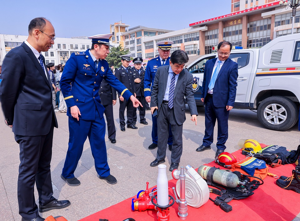 田义轲代表学校向长期以来关心支持学校事业发展的城阳公安分局、消防救援局等单位表示衷心感谢和诚挚欢迎,向本次活动的顺利举办表示热烈的祝贺。他指出,三方联合举办全民国家安全教育日暨2026年首届校园安全文化节开幕式,是学校贯彻落实习近平总书记关于安全生产和校园安全稳定重要论述的具体行动,是深化“平安校园”建设、护航学校高质量发展的关键举措,对培育校园安全文化、提升师生安全素养和防范技能具有重要意义。田义轲对组织开展好本次安全文化节活动提出四点要求。一要提高政治站位,筑牢“思想防线”,深刻认识校园安全的极端重要性。始终坚持“人民至上、生命至上”,把安全工作贯穿教育教学、管理服务、校园建设全过程,坚决摒弃麻痹思想、侥幸心理,以“时时放心不下”的责任感,筑牢校园安全思想根基。二要强化校地联动,织密“防护网络”,凝聚校园安全治理的强大合力。加强系统谋划与顶层设计,持续加大教育培训力度,不断健全完善安全教育长效机制,集聚校地校警平台合力,推动安全宣传教育活动取得实效。三要突出师生主体,激活“内生动力”,提升校园安全建设的参与度与体验感。推动师生从“旁观者”变为“参与者”、从“被动学”转为“主动做”,教师做好安全引路人,学生主动学习安全知识、提升应急技能。四要注重长效建设,巩固“活动成果”,推动校园安全工作走深走实。以开展本次活动为契机抓牢抓实校园安全稳定工作,加强安全文化阵地建设,强化隐患排查整治,夯实筑牢校园安全防线。